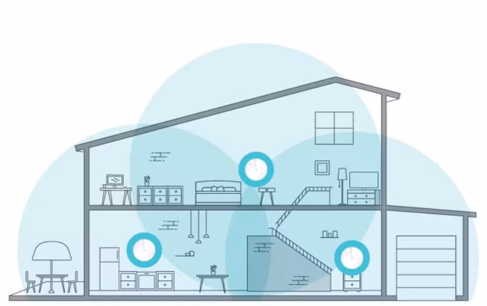 Mesh é um conjunto de pontos (nós) trabalhando como se fossem uma única rede. Você espalha esses nós pela casa e eles “conversam” entre si.