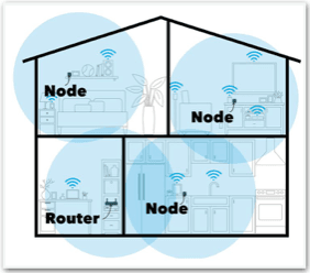 - Ele fica num lugar onde ainda pega bom sinal do nó principal e “entrega” pro resto.